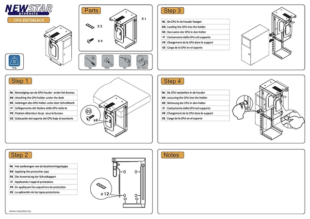 Vendor Homepage: http://en.newstar.eu/av-mounts/pc-mounts/newstar-cpu-desk-mount-9/?alstart=0