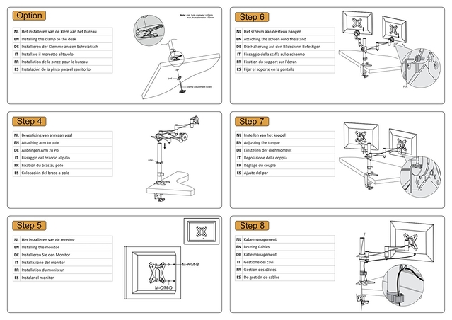 – Desk mount: Desk clamp & grommet