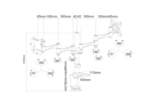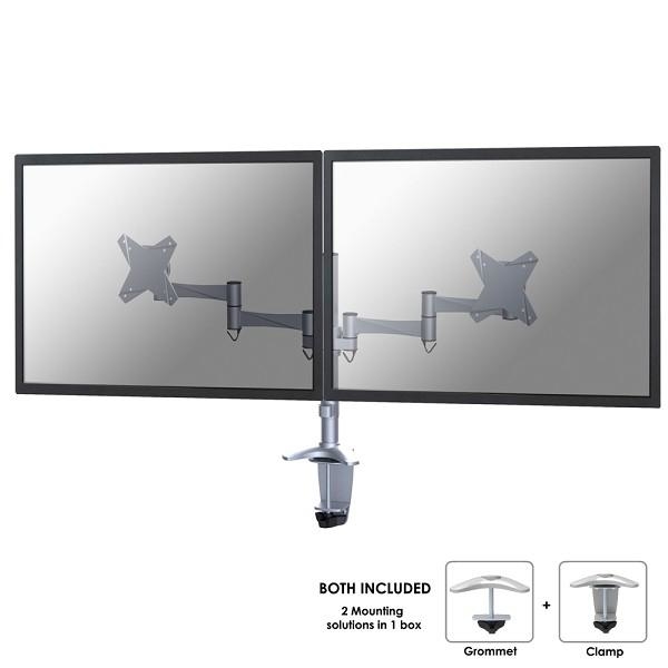 Description: The NewStar desk mount, model FPMA-D1330DSILVER is a tilt-, swivel and rotatable desk mount for 2 flat screens up to 24”. This mount is a great choice for space saving placement on desks using a desk clamp or grommet mount.