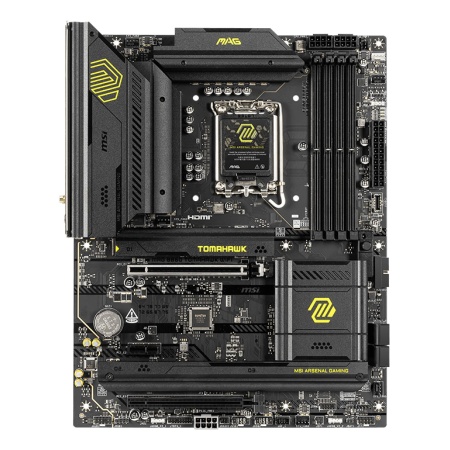 Mainboard MSI Intel B860 Express LGA1851 ATX Memory DDR5 Memory slots 4 1xPCI-Express 4.0 1x 1xPCI-Express 4.0 4x 1xPCI-Express 5.0 16x 3xM.2 1xHDMI 1xDisplayPort 8xUSB 2.0 6xUSB 3.2 3xUSB-C 1xOptical S/PDIF 1xRJ45 3xAudio port 1xThunderbolt MAGB860TOMAHAWKWIFI