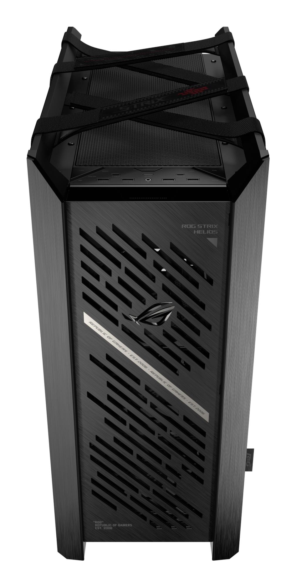 ROG Strix Helios II EATX mid-tower gaming case with dual tempered glass side panels, GPU support for up to 450mm in length, aluminum frame and front panel, GPU braces and 420mm radiator support