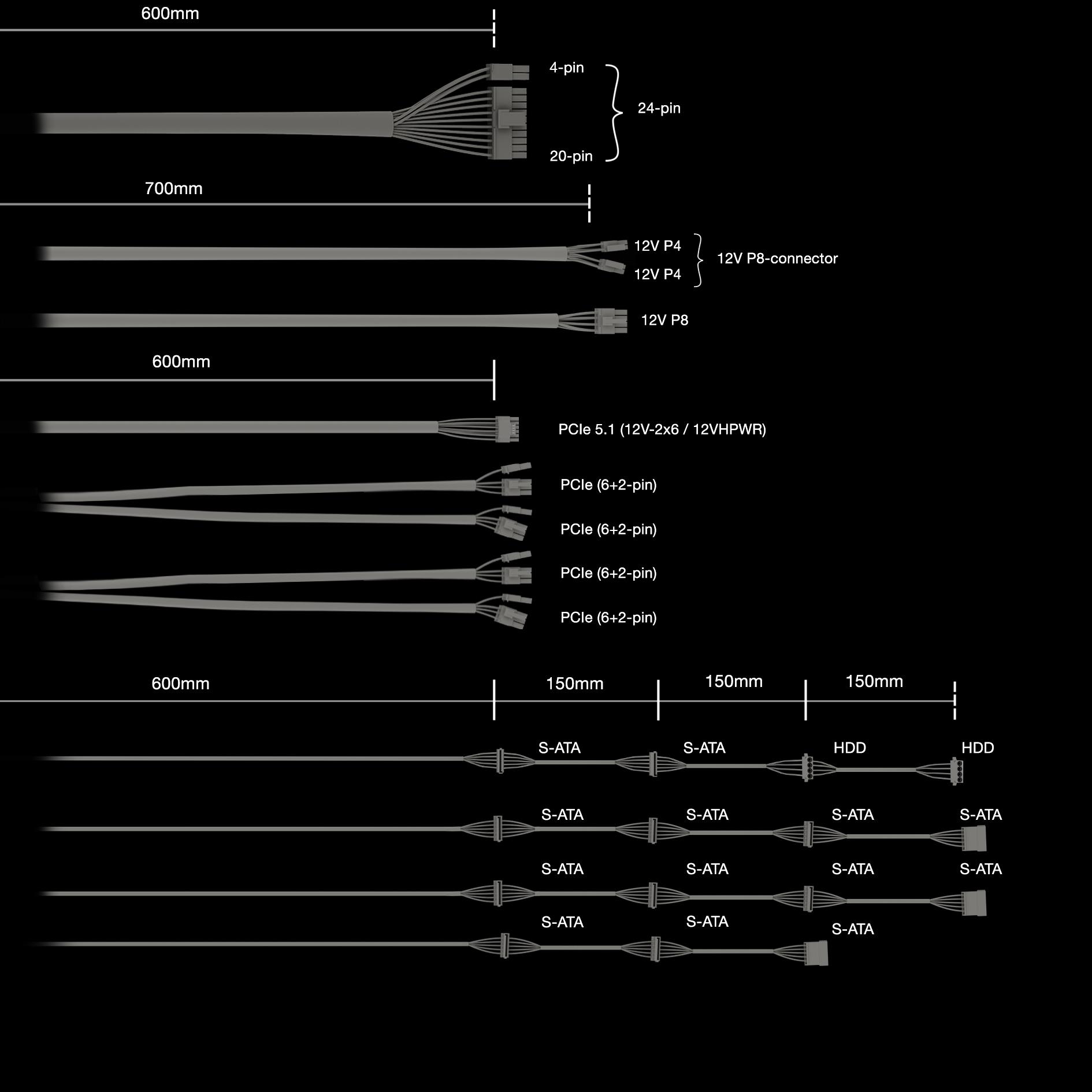 | PCI Express power cable length | 600 mm |