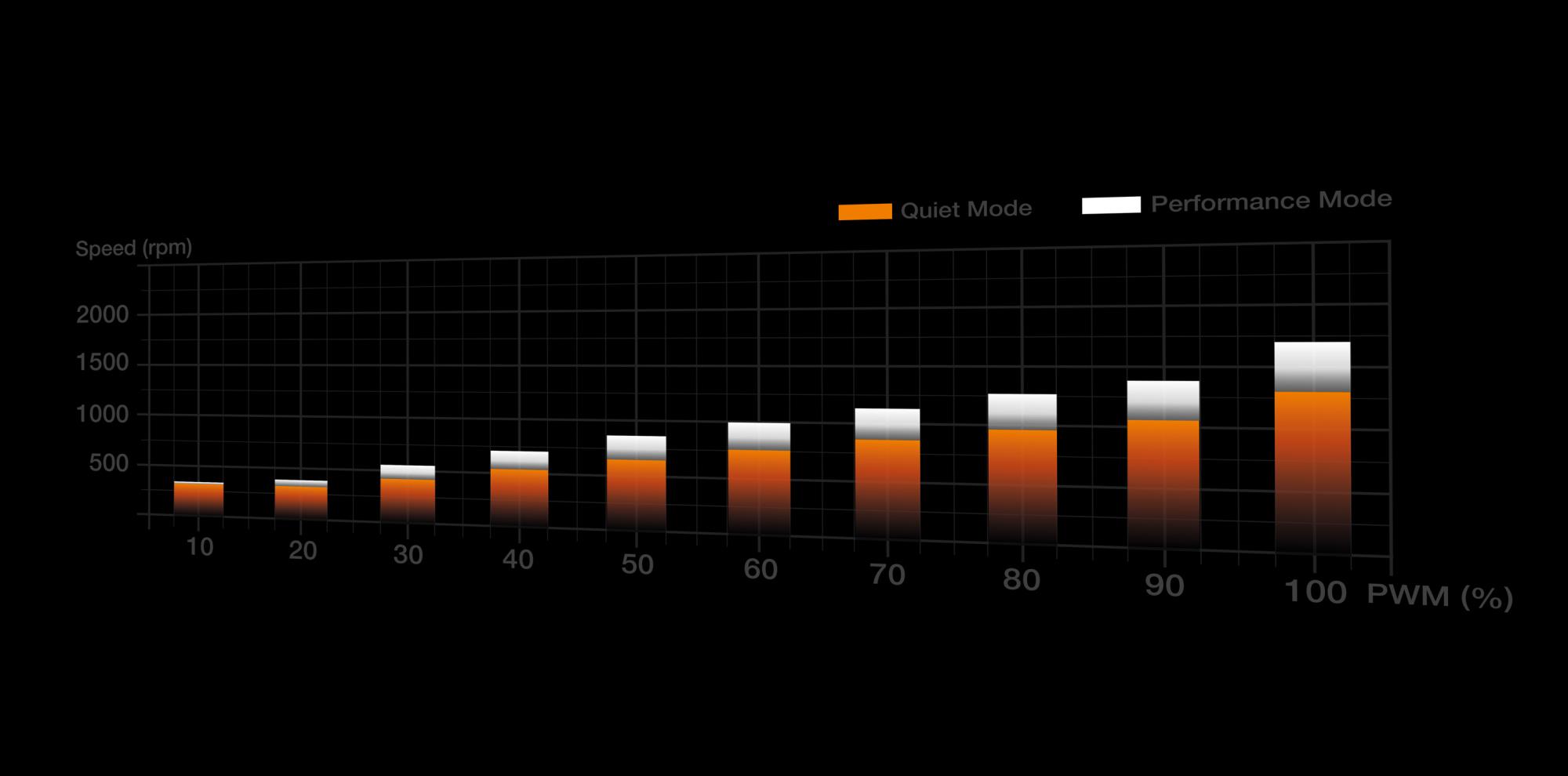 - A speed switch allows you to switch between Quiet Mode and Performance Mode anytime