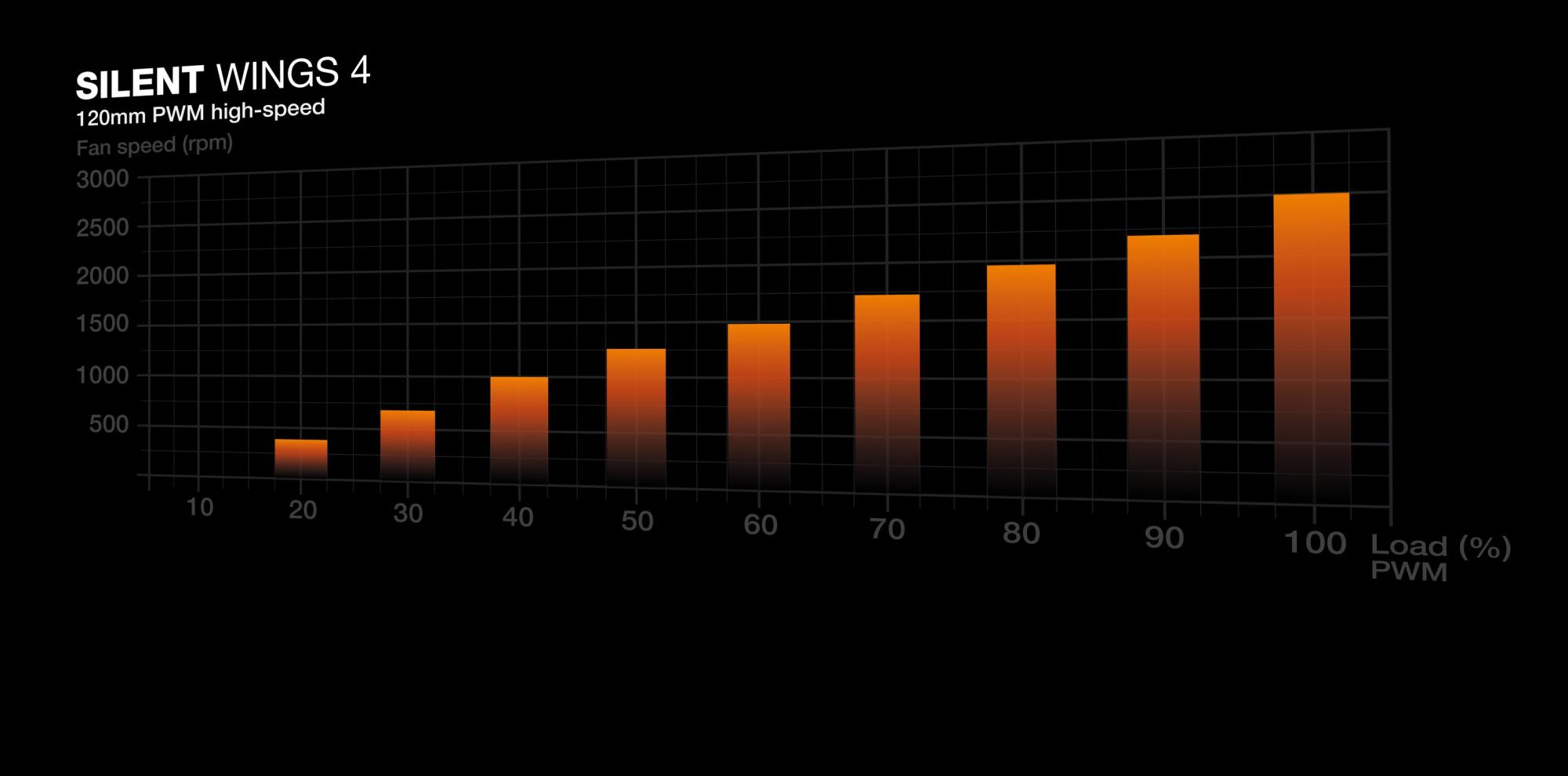 - 2 Silent Wings 4 120mm PWM high-speed fans with radiator corners for virtually inaudible operation
