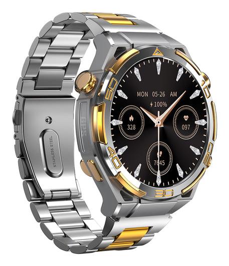 Summary: Blackview W90 Pro. Display diagonal: 3.63 cm (1.43"), Display technology: AMOLED, Display resolution: 466 x 466 pixels, Touchscreen. RAM capacity: 0.48 MB. GPS (satellite). Battery capacity: 900 mAh. Weight: 150 g. Band colour: Gold, Silver, Band size: One Size