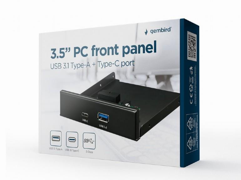 Internal 3.5'' front PC panel, USB 3.1 Type-A + Type-C port, black