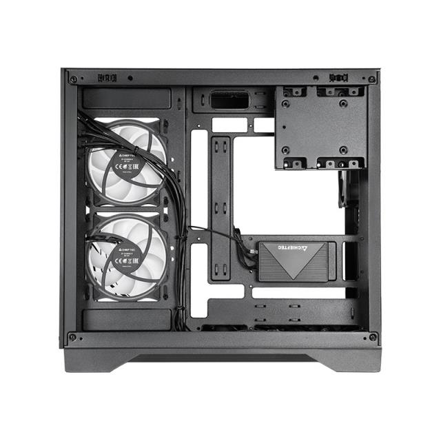 The CHIEFTEC Visio features tempered glass panels on both the left and front sides, incorporating a dual-chamber layout to accommodate the latest back-connect motherboards (ASUS BTF and MSI Project Zero compatible). This design streamlines cable management for a clean interior view and unobstructed airflow.
