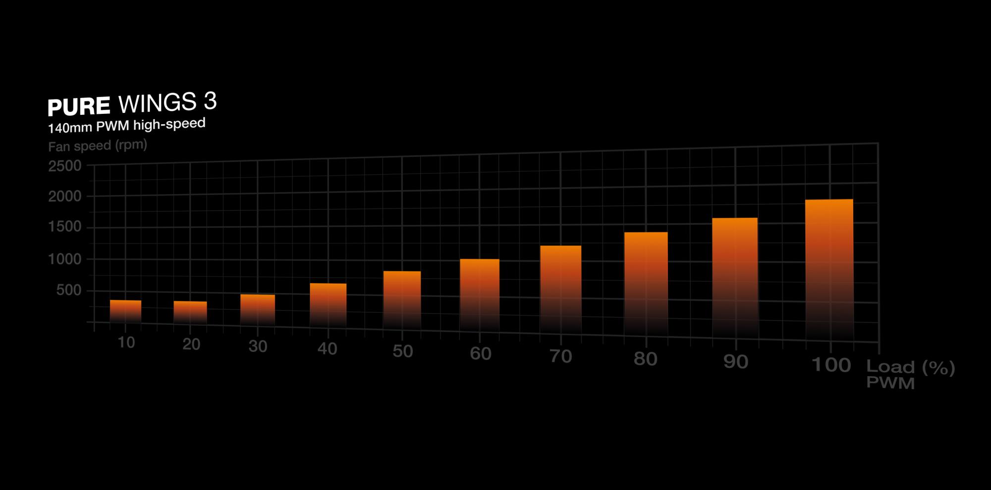 - Pure Wings 3 140mm PWM high-speed White can be operated with very low minimum rpm for very quiet operation