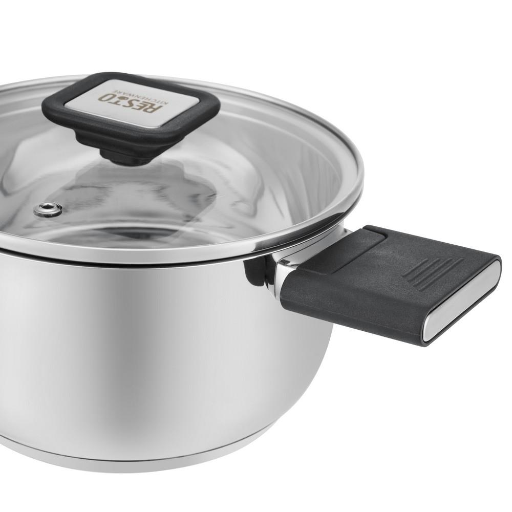 We all know the trials and tribulations of cooking. Fundamentally, you are performing a task using high heats with bubbling hot liquids in multiple locations in close proximity. Therefore, anything that can be done to keep you safe and make the task easier, we at Resto Kitchenware and tried to do. One example of this are the innovative lid knobs on this Anser range that can be adjusted to two positions, allowing them to be lifted up to protect fingers from burns on the heated glass. This means that even if you are working at speed with many different pans on the go, you can lift the lids with ease.
