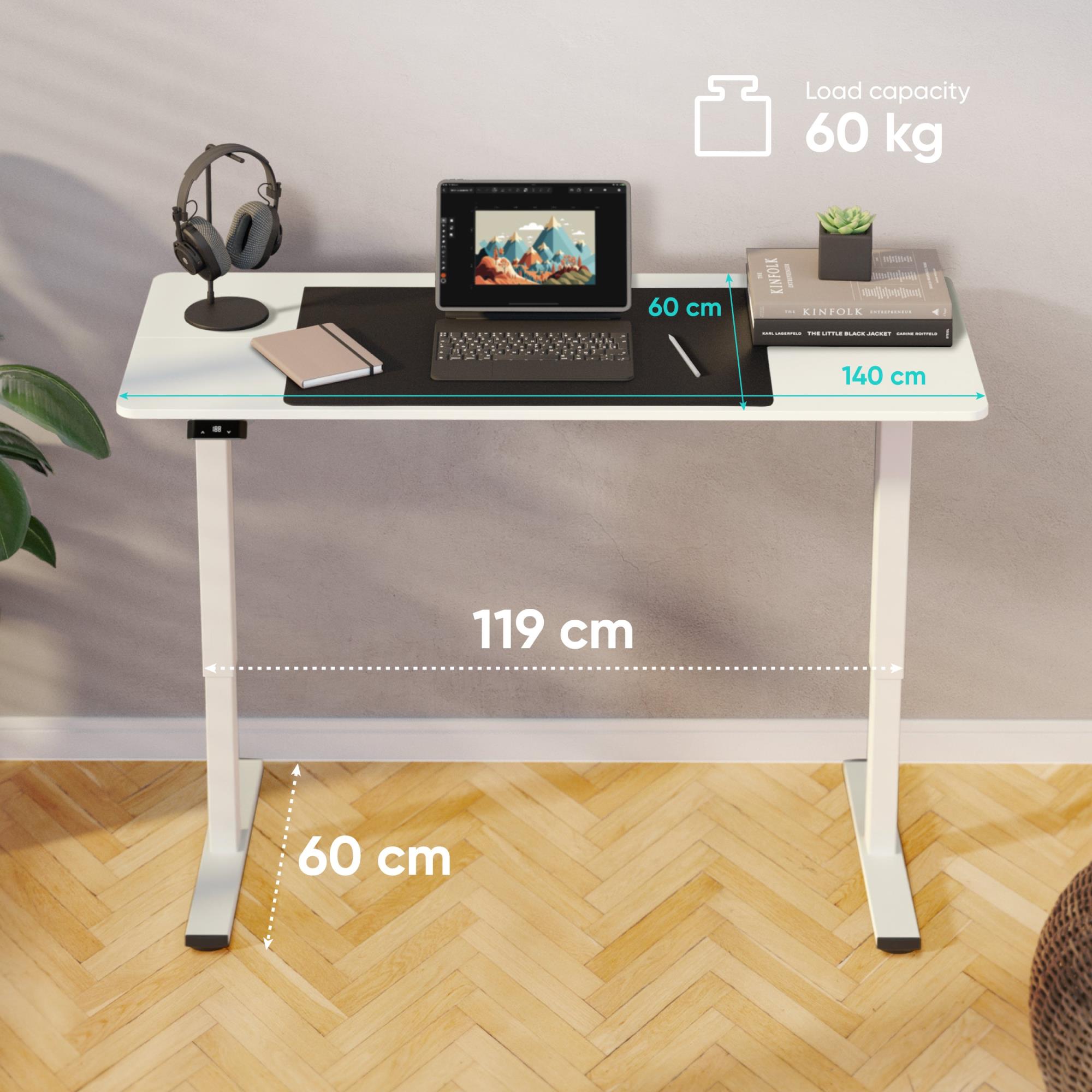 Motorized Desk with Height Adjustment max 60 kg, White WDT221E