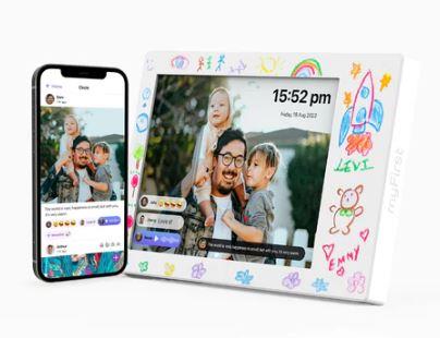 myFirst Frame Doodle, a groundbreaking digital frame with a 4:3 aspect ratio that expertly frames every cherished moment, enhancing your viewing experience. The Frame Doodle seamlessly integrates with our myFirst Circle app, allowing you to easily share photos or videos with your loved ones for display on its anti-glare matte screen.