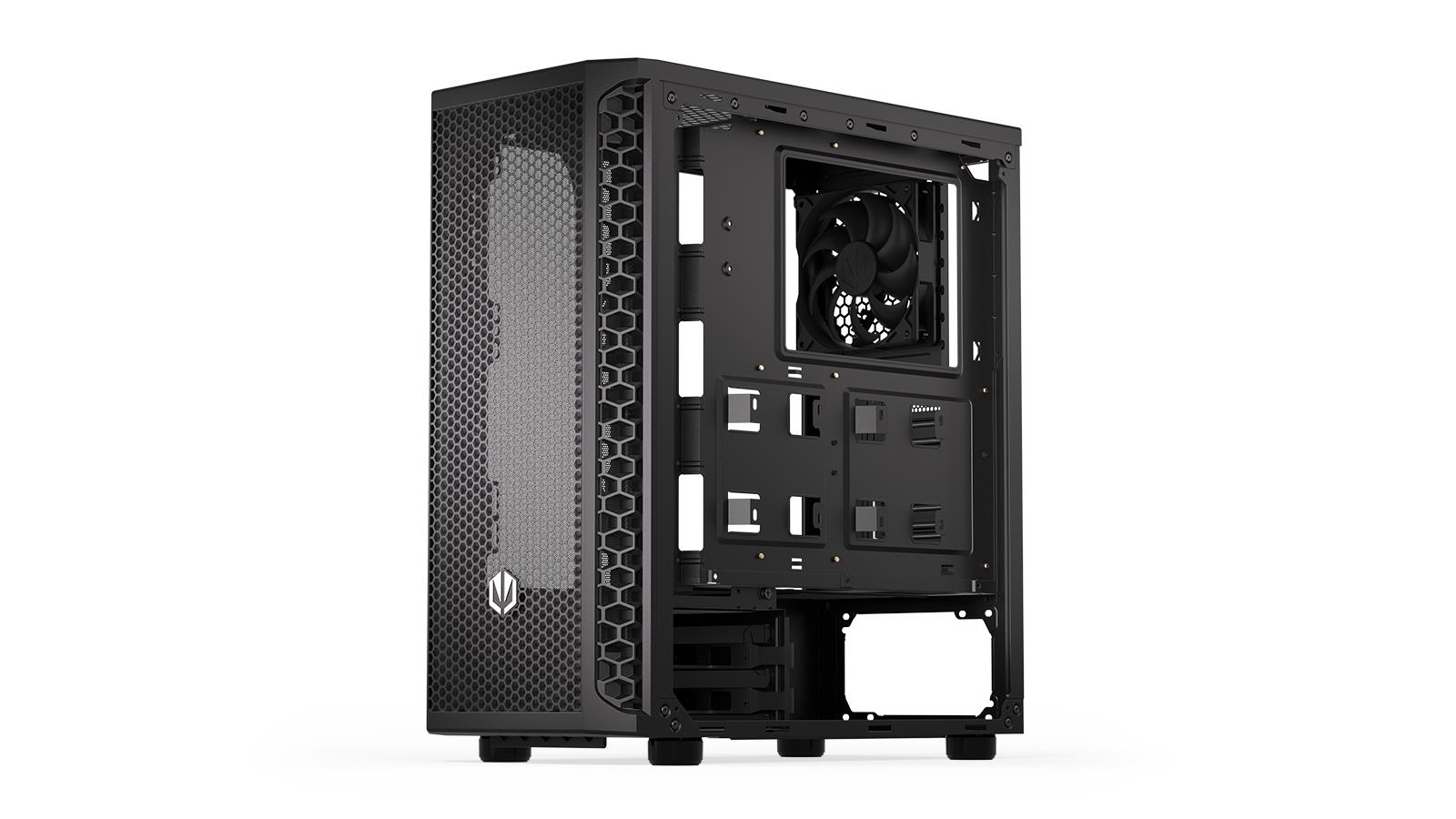 It was designed to impress, and we think it does a pretty good job – the case looks rad and maintains a fresh draft around the PC components. You can easily fit a tall CPU cooler and a 350 mm long graphic card inside. There is also space for eight fans – including one Stratus 120 PWM that we’re throwing in.