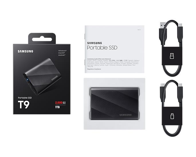 External SSD SAMSUNG T9 1TB USB 3.2 Write speed 1950 MBytes/sec Read speed 2000 MBytes/sec MU-PG1T0B/EU