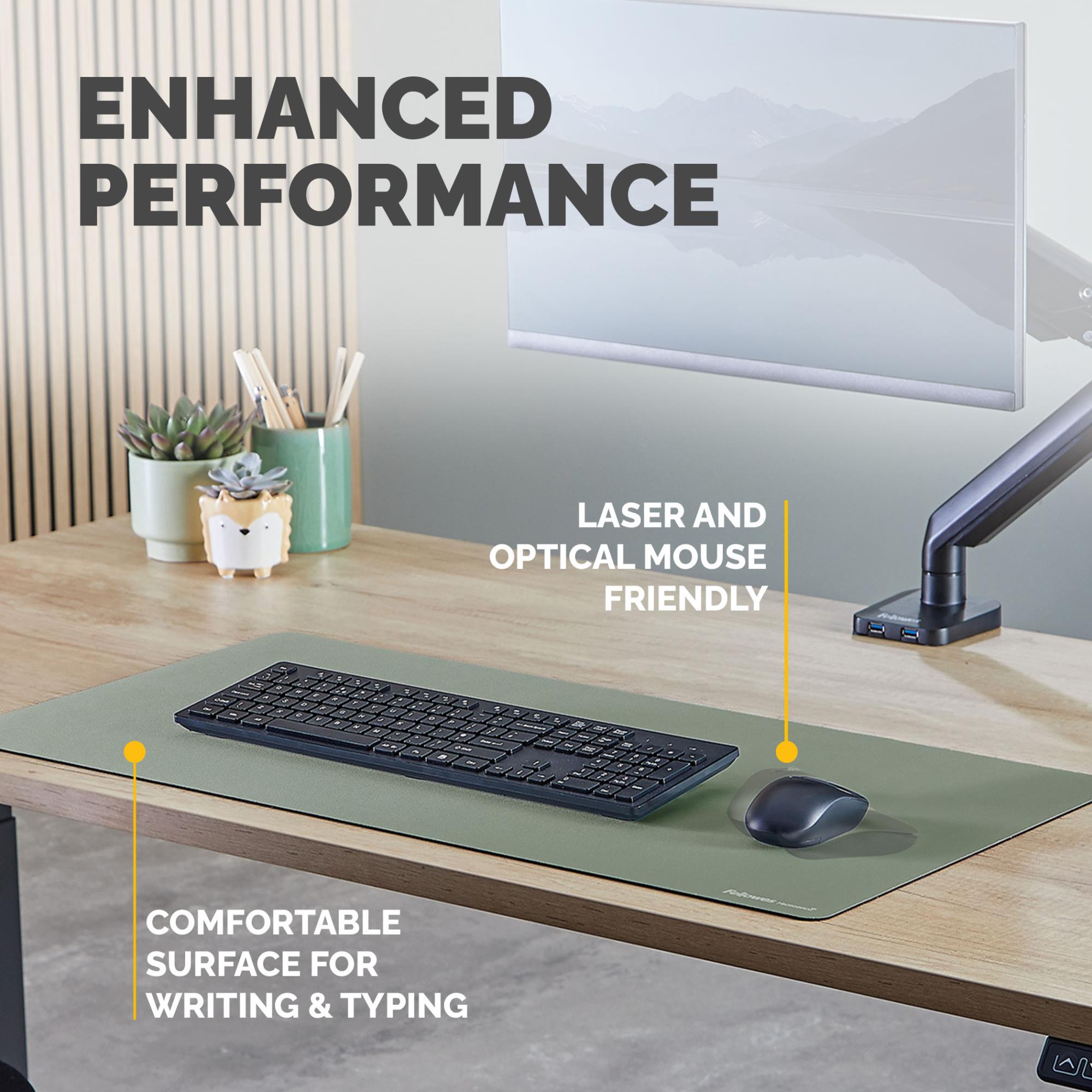 | Summary | Fellowes Computer Desk Mat with Non-Slip Base Breyta Desk Mat with Antibacterial Protection Sage. Product colour: Sage |
