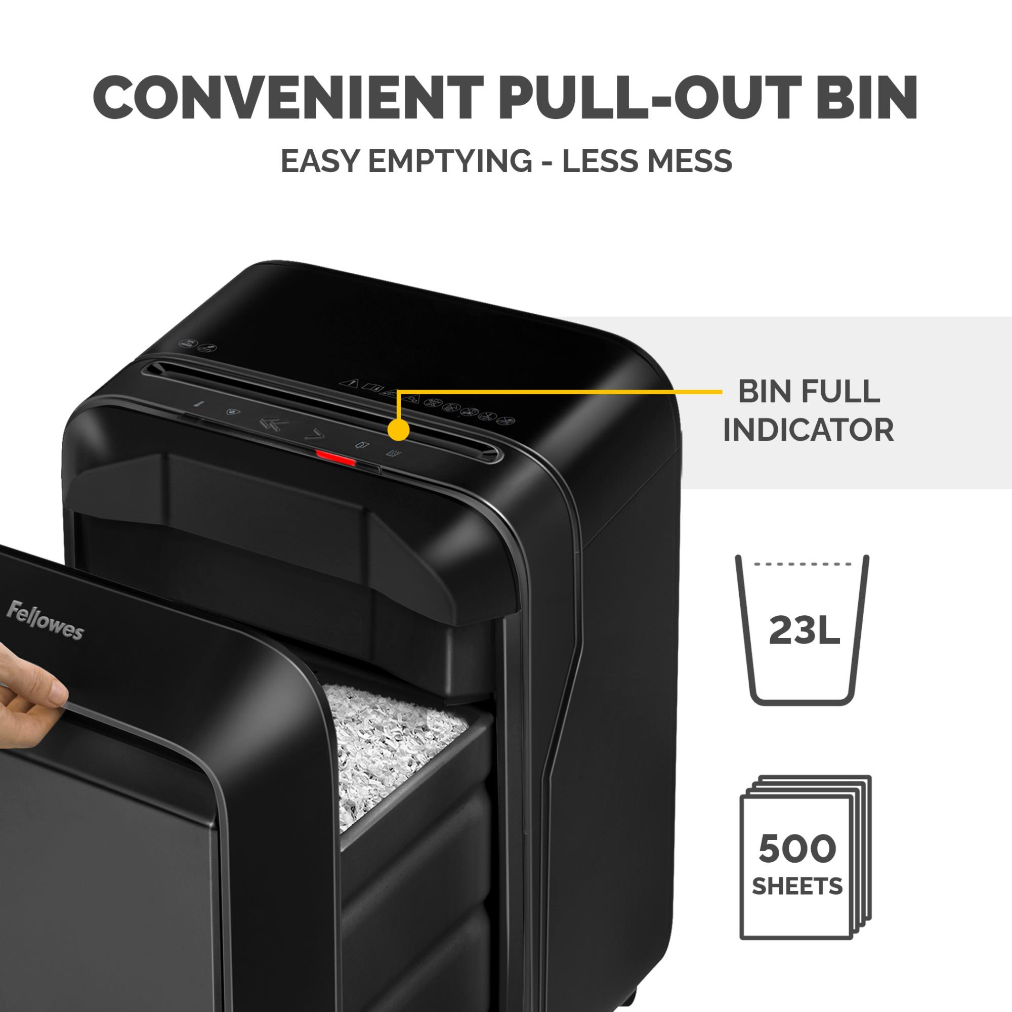Fellowes LX Series Powershred LX210. Shredding size: 4 x 12 mm, Basket volume: 23 L, Control type: Touch. Width: 358 mm, Depth: 535 mm, Height: 297 mm