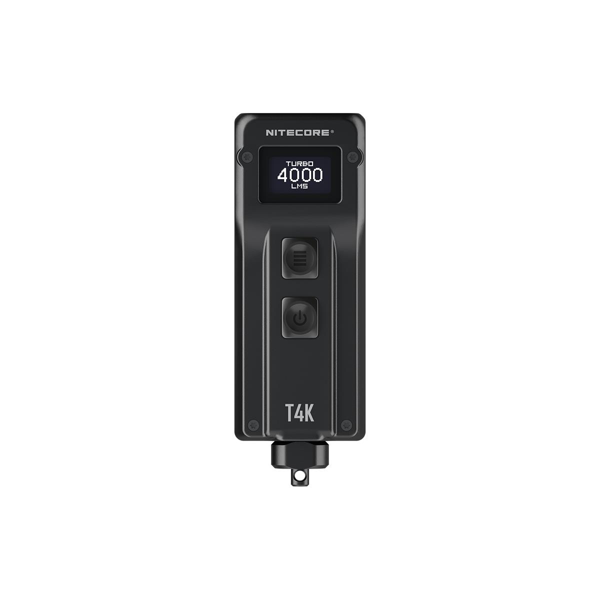 The Nitecore T4K keyring light has an incredible maximum output of 4000 lumens from the 4 x Cree XP-L2 V6 LEDs and is powered by a built-in, 1000mAh li-ion battery. The flashlight is rechargeable via a USB-C port at the base of the torch and comes with a USB-C to USB charging cable.