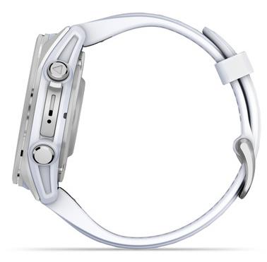 Summary: Garmin Fenix 8. Display diagonal: 3.3 cm (1.3″), Display technology: AMOLED, Display resolution: 416 x 416 pixels, Touchscreen. Flash memory: 32 GB. Wi-Fi. GPS (satellite). Waterproof up to: 40 m, Band material: Silicone, Band colour: White, Band size: One Size