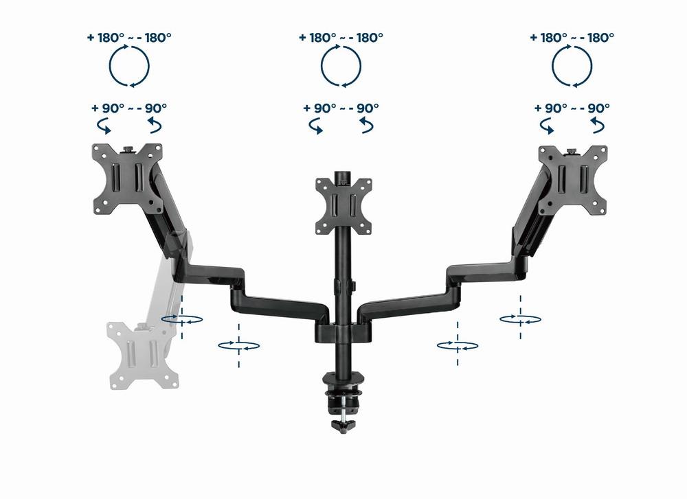 Desk mounted adjustable mounting arm for 3 monitors (full-motion)