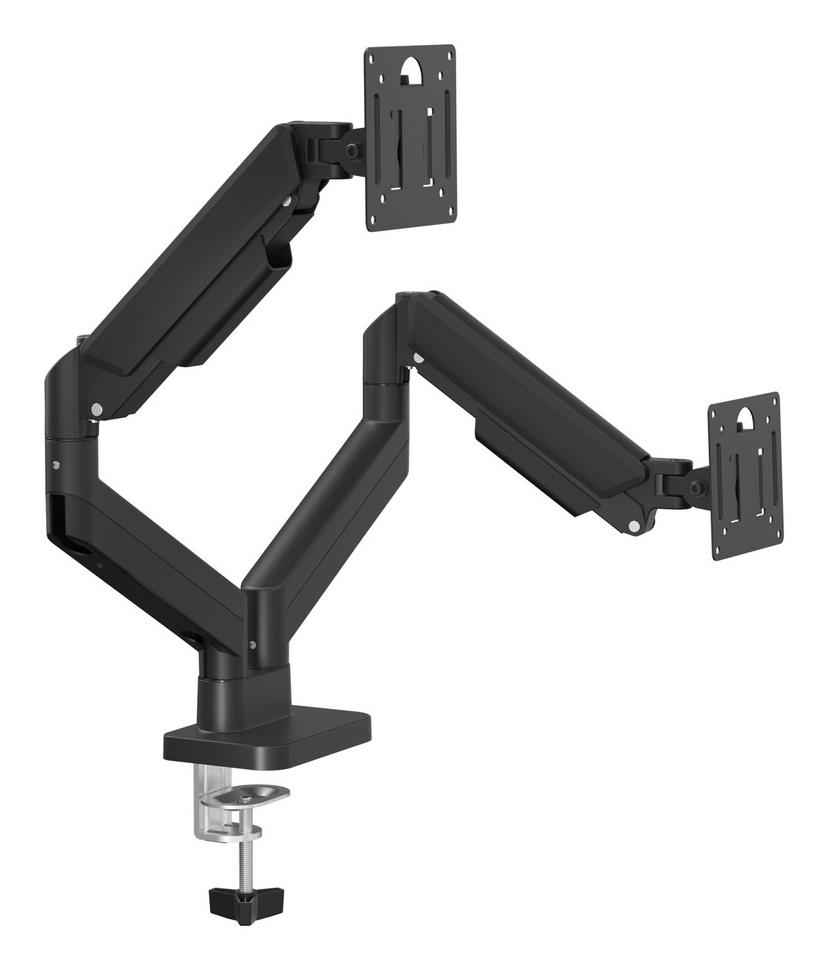 Gembird MA-DA2-06. Mounting: Clamp, Maximum weight capacity: 20 kg, Minimum screen size: 43.2 cm (17"), Maximum screen size: 81.3 cm (32"), Minimum VESA mount: 75 x 75 mm, Maximum VESA mount: 100 x 100 mm. Height adjustment, Swivel angle range: 90 - -90°, Tilt angle range: -90 - 45°. Product colour: Black