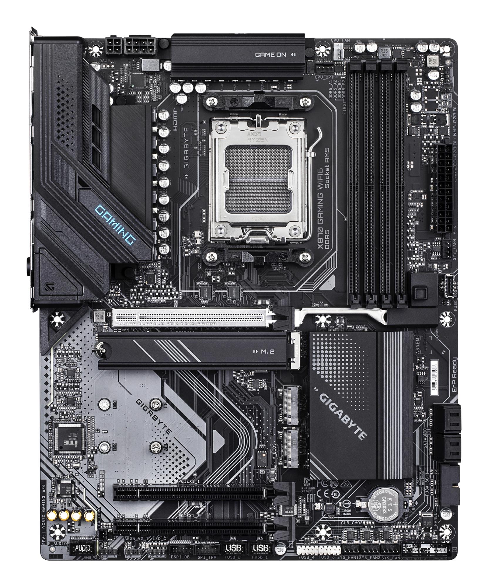 | Summary | GIGABYTE X870 GAMING WIFI6 Motherboard – Supports AMD Ryzen 9000 CPUs, 8+2+2 phases VRM, up to 8000MHz DDR5 (OC), 1xPCIe 5.0 + 2xPCIe 4.0, Wi-Fi 6, 2.5GbE LAN, USB 4. Processor manufacturer: AMD, Processor socket: Socket AM5, Compatible processor series: AMD Ryzen™ 7. Supported memory types: DDR5-SDRAM, Maximum internal memory: 256 GB, Memory slots type: DIMM. Supported storage drive interfaces: M.2, SATA III, Supported storage drive types: HDD & SSD, RAID levels: 0, 1, 10. Ethernet interface type: 2.5 Gigabit Ethernet, Top Wi-Fi standard: Wi-Fi 6 (802.11ax), Wi-Fi standards: 802.11b, 802.11g, Wi-Fi 4 (802.11n), Wi-Fi 5 (802.11ac), Wi-Fi 6 (802.11ax), Wi-Fi 7 (802.11be). Component for: PC, Motherboard form factor: ATX, Motherboard chipset family: AMD |