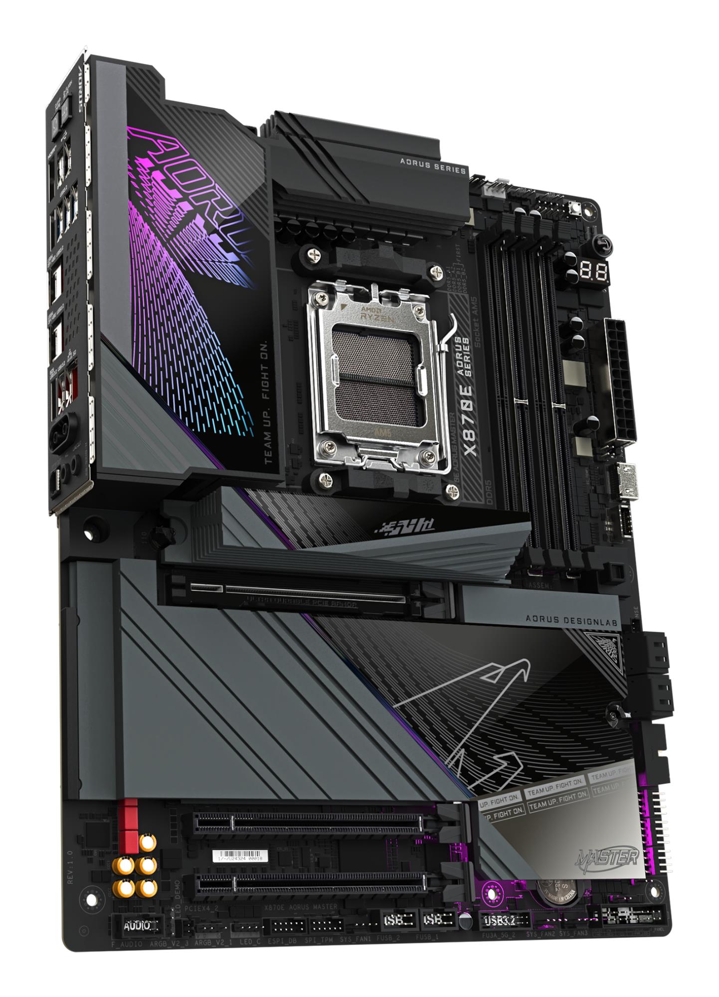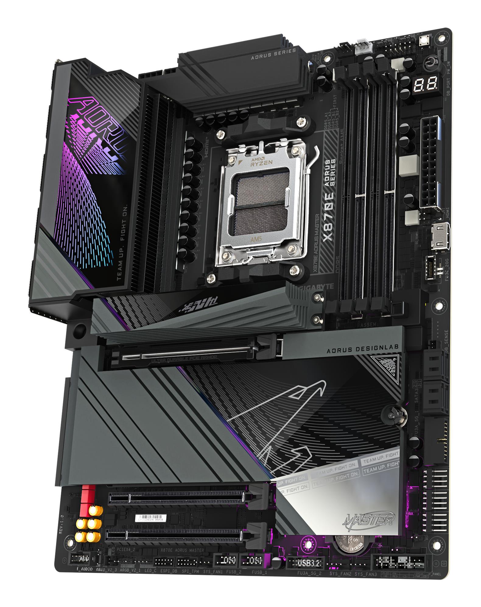 | Summary | GIGABYTE X870E AORUS MASTER Motherboard – Supports AMD Ryzen 9000 CPUs, 16+2+2 Phases Digital VRM, up to 8600MHz DDR5 (OC), 3xPCIe 5.0 + 1xPCIe 4.0, Wi-Fi 7, 5GbE LAN, USB 4. Processor manufacturer: AMD, Processor socket: Socket AM5, Compatible processor series: AMD Ryzen 7000 Series, AMD Ryzen 8000 Series, AMD Ryzen 9000 Series. Supported memory types: DDR5-SDRAM, Maximum internal memory: 256 GB, Memory slots type: DIMM. Supported storage drive interfaces: M.2, SATA III, Supported storage drive types: HDD & SSD, RAID levels: 0, 1, 10. Ethernet interface type: 5 Gigabit Ethernet, LAN controller: Realtek RTL8126, Top Wi-Fi standard: Wi-Fi 7 (802.11be). Component for: PC, Motherboard form factor: ATX, Motherboard chipset family: AMD |