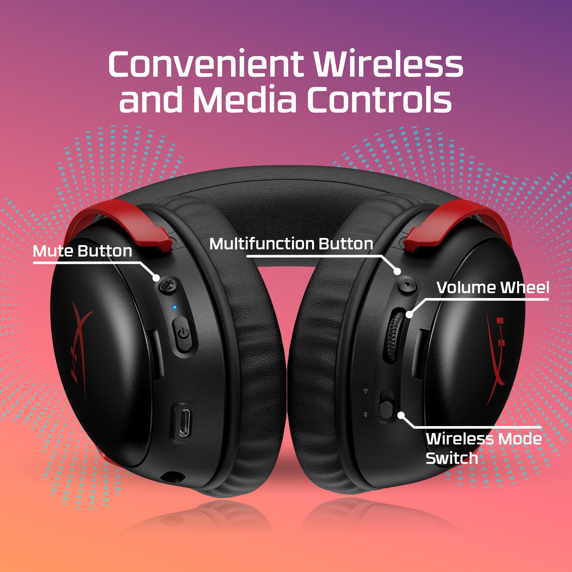 The Cloud III S Wireless represents the next evolution of Cloud III Wireless, retaining all the beloved features of its predecessor. In addition to the 2.4GHz wireless connectivity, users can connect to more devices via Bluetooth or an Instant Pair[2] mode that is compatible with select OMEN laptops. It also boasts extended battery life and multiple customization options. With HyperX signature comfort, this headset delivers luxurious comfort for all-day gaming or marathon streaming sessions. With up to 120 hours[1] of battery life, you can enjoy hours of uninterrupted gaming fun via 2.4GHz. Push the limits even further with up to 200 hours in Bluetooth mode. Equipped with 53mm angled drivers and a lifetime activation of DTS Headphone:X Spatial Audio[3], it delivers crystal-clear sound and enhanced audio positioning, precisely identifying critical audio cues like footsteps. The 10mm microphone provides clear communication with teammates, crisp call quality, and effortless conversations with friends. With easy-to-use audio controls, you can swiftly mute or unmute the microphone, adjust volume levels, and switch between wireless modes effortlessly. Whether you're gaming, listening to music, watching YouTube, browsing Twitch, or completing assignments, the Cloud III S Wireless ensures you never miss a beat or crucial shot!