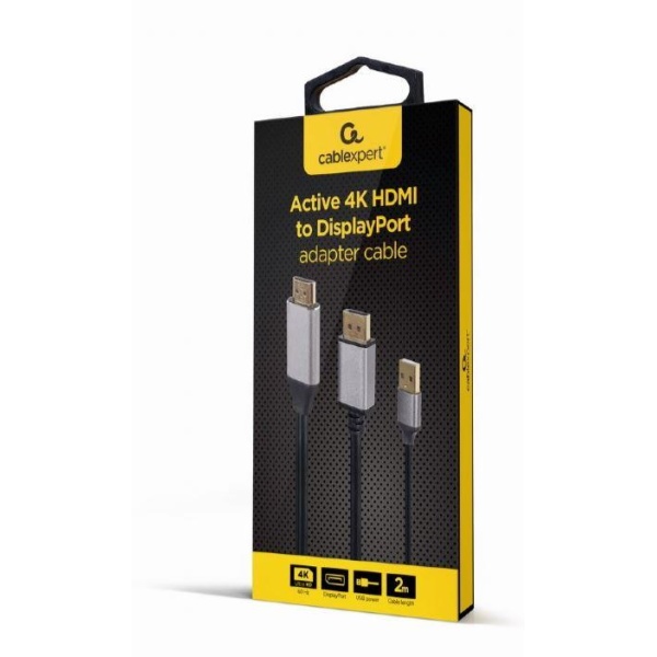Active 4K HDMI male to DisplayPort male adapter cable, 2 m, black