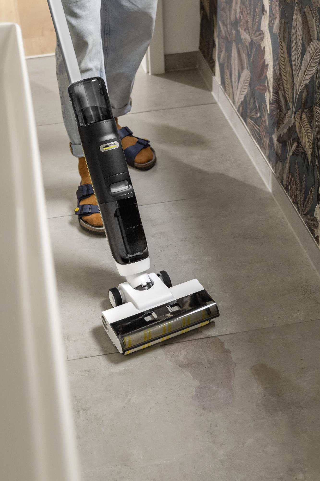 Kärcher FCV 3 vloerreiniger. Product type: 2-in-1 stick vacuum, Dust container type: Bagless, Product colour: White. Cleaning type: Dry&wet, Vacuum air filtering: HEPA, Dirt separating method: Cyclonic. Power source: Battery, Maximum input power: 160 W, Battery technology: Lithium-Ion (Li-Ion). Weight (without accessories): 3.8 kg