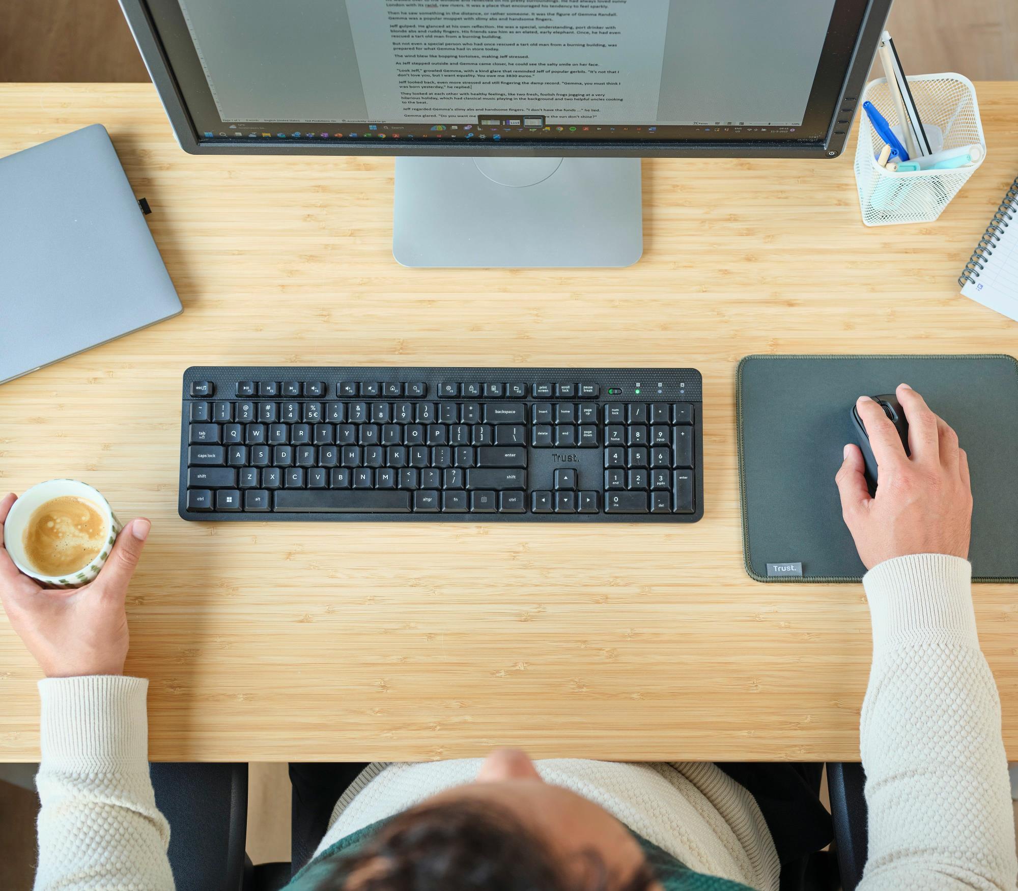 Thin and silent wireless keyboard for hours of working comfort