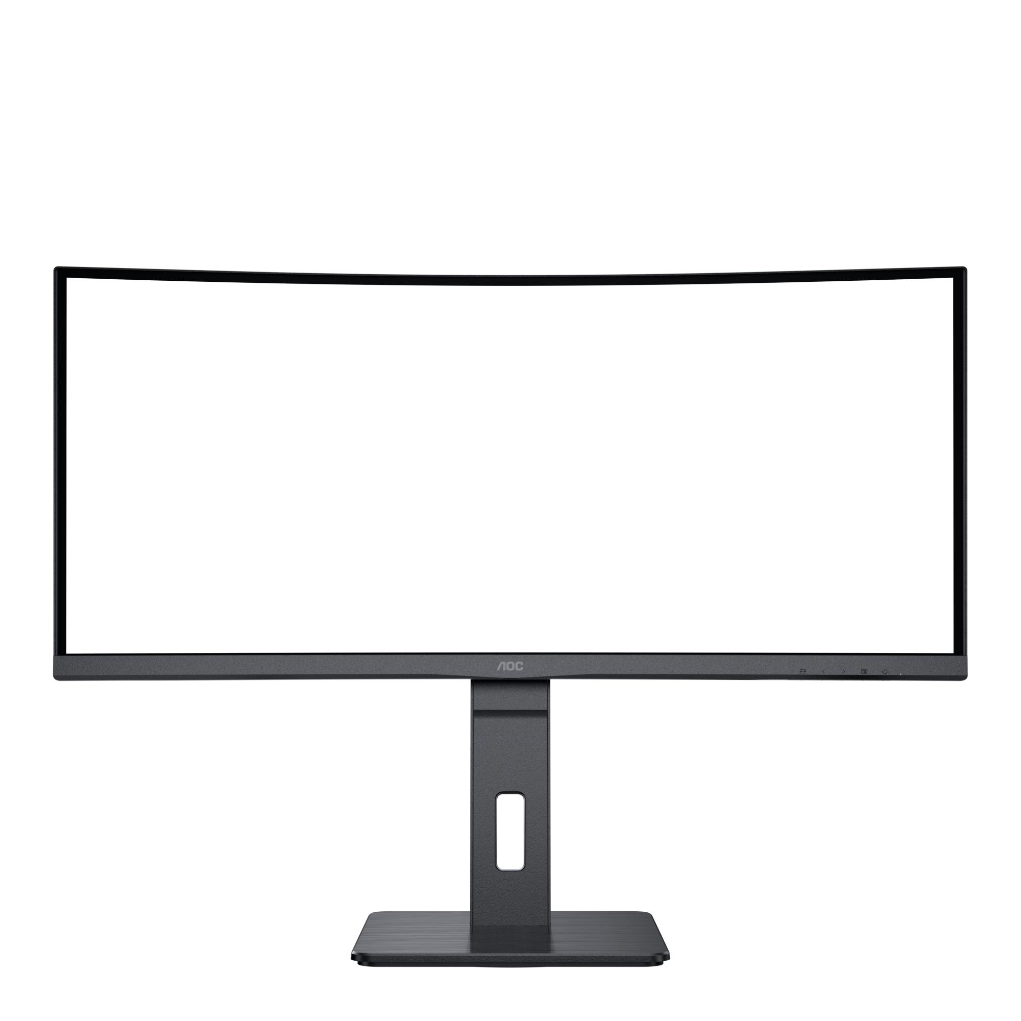 Summary: AOC CU34P3CV. Display diagonal: 86.4 cm (34″), Display resolution: 3440 x 1440 pixels, HD type: UltraWide Quad HD, Display technology: LED, Response time: 4 ms, Native aspect ratio: 21:9, Viewing angle, horizontal: 178°, Viewing angle, vertical: 178°. Built-in speaker(s). Built-in USB hub, USB hub version: 3.2 Gen 1 (3.1 Gen 1). VESA mounting, Height adjustment. Product colour: Black