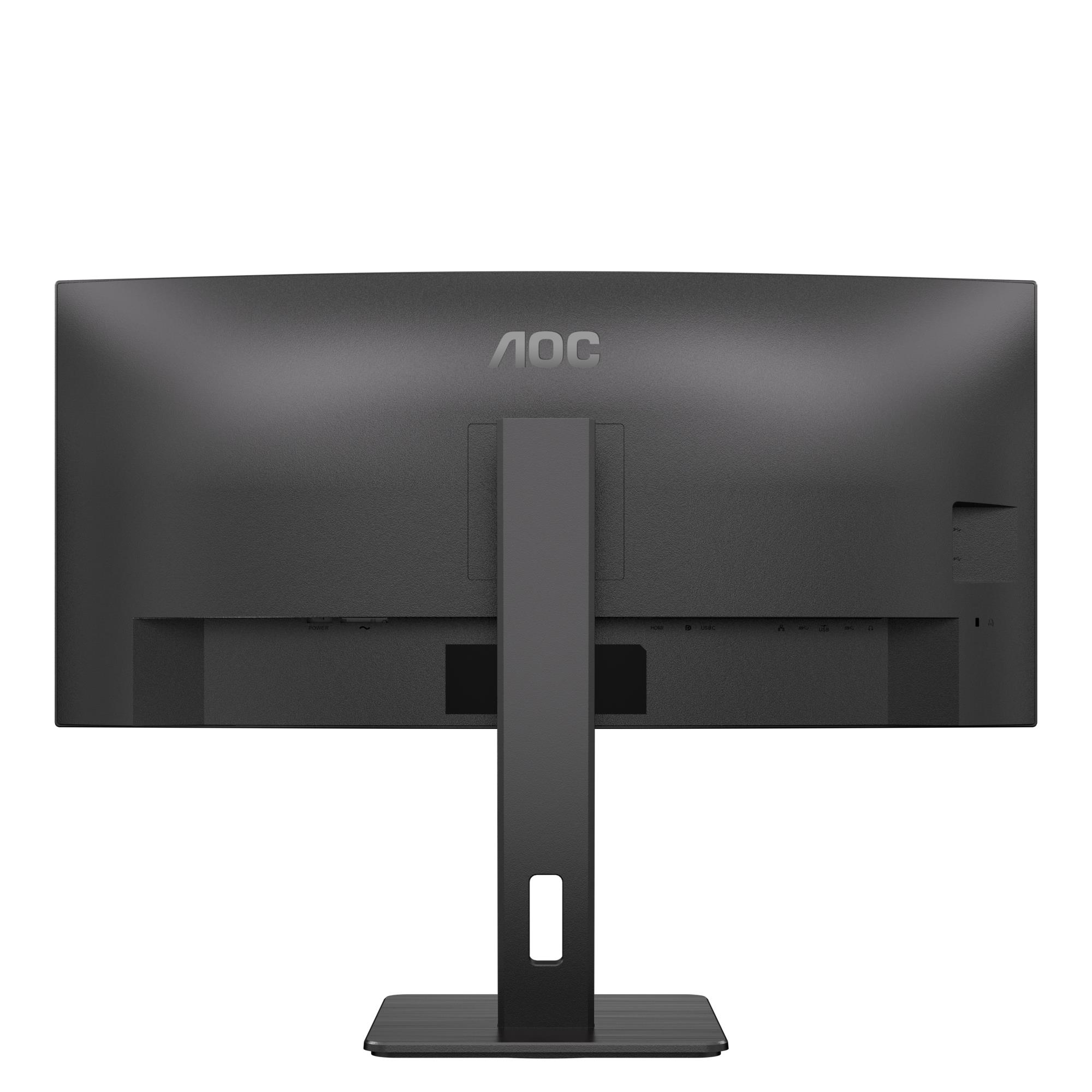 AOC CU34P3CV. Display diagonal: 86.4 cm (34"), Display resolution: 3440 x 1440 pixels, HD type: UltraWide Quad HD, Display technology: LED, Response time: 4 ms, Native aspect ratio: 21:9, Viewing angle, horizontal: 178°, Viewing angle, vertical: 178°. Built-in speaker(s). Built-in USB hub, USB hub version: 3.2 Gen 1 (3.1 Gen 1). VESA mounting, Height adjustment. Product colour: Black