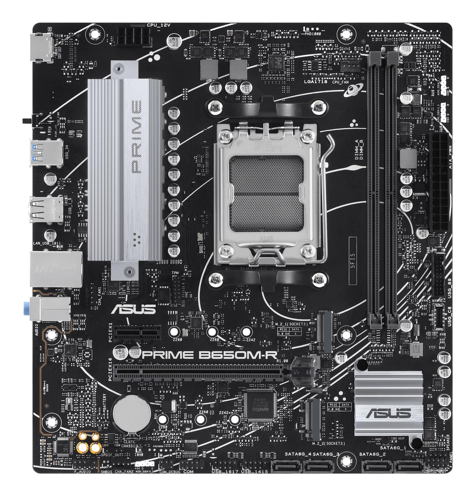 ASUS Prime series motherboards are expertly engineered to unleash the full potential of AMD Ryzen 7000-series processors. Boasting a robust power design, comprehensive cooling solutions and intelligent tuning options, PRIME B650M-R provides users and PC DIY builders with a range of performance optimizations via intuitive software and firmware features.