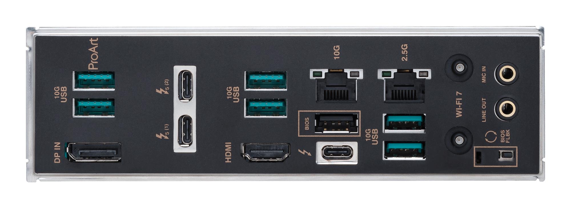 | Description | <p>This motherboard manifests a professional, elegant and precise vision for content creators of all kinds, with a style elevated by tone-on-tone layers of black infused with metallic gold touches. A subtly designed I/O cover provides a sleek and sophisticated look while concealing the premium connectors within.<br><br>All You Need for Maximum Productivity<br><br><b>Thunderbolt™ Connectivity</b><br>Get immersed in your creations with two Thunderbolt™ 5 and one Thunderbolt™ 4 ports for connecting to all your compatible content-creation gadgets, enjoying up to 80 Gbps of bi-directional bandwidth, and up to 120 Gbps with Bandwidth Boost. To further push your creative work with one 8K or two 4K color-accurate monitors, you can connect your discrete graphics card to the onboard DisplayPort™ In port on the rear I/O panel and direct the video output via the Thunderbolt™ 5 port*.<br>*DP In cable not included.<br><br>Ultrafast Networking<br><br><b>10 Gb & 2.5 Gb Ethernet</b><br>Dual Ethernet ports provide fast data transfers simultaneously for 2.5G internet streaming or uploading and 10G for local network-attached storage (NAS), allowing for improved data organization and security.<br><br><b>WiFi 7</b><br>The revolutionary WiFi 7 is up to 4.8X faster than standard WiFi 6, thanks to technology like 320 MHz channels on the 6 GHz band and 4K QAM*. Multi-Link Operation (MLO) provides a more stable WiFi connection and lower latency, unlocking the realms of the unknown in gaming, streaming and industrial IoT.<br><br><b>ASUS WiFi Q-Antenna</b><br>Dual transceivers support the 2.4, 5 and 6 GHz bands to enable faster throughput, with directional sensitivity to improve signal quality and cover greater distances.<br><br><b>PCIe 5.0 Support</b><br>The ProArt Z890-CREATOR WIFI offers PCIe 5.0 support to give unfettered bandwidth to the fastest SSDs and graphics cards available.<br><br><b>Five Onboard M.2 Slots</b><br>ProArt Z890-CREATOR WIFI features one PCIe 5.0 M.2 slot and four PCIe 4.0 M.2 slots to enjoy the fastest data transfers of up to 128 Gbps*, and all M.2 slots support NVMe RAID configurations to take advantage of the latest available speeds.<br><br><b>PCIe 5.0 Expansion Slots</b><br>Both of the x16 expansion slots are PCIe 5.0, offering incredible speeds of up to 64 GB/s for compatible devices. To bear the brunt of massive graphics cards, they are also protected with SafeSlot retention brackets, and the top slot can be released easily via Q-Release Slim.<br><br><b>Seamless Dual-PC Sharing with Thunderbolt™ Share</b><br>Experience a revolutionary way to interact with two PCs using Thunderbolt™ Share—the ultrafast connectivity solution that transforms your dual-PC setup. Seamlessly share screens, keyboards, mice, storage and files between two computers, with the unparalleled speed of Thunderbolt™ technology.<br>*A certified Thunderbolt™ or USB4® cable is required to meet minimum bandwidth requirements. Cable not included.<br><br>The Core of Your Powerful Workstation<br><br><b>Robust Power Design</b><br>Designed to meet the needs of high-core-count CPUs, the ProArt Z890-CREATOR WIFI features 16(90A)+1(90A)+2(90A)+2(80A) power stages that integrate high-side and low-side MOSFETs and drivers into packages rated for up to 90 amps each. This configuration ensures optimal power delivery, efficiency, stability and performance for new Intel® Core™ Ultra Processors (Series 2).<br><br><b>Eight-Layer PCB Design</b><br>This enhances quick heat dissipation around the voltage regulators for enhanced stability and overclocking.<br><br><b>ProCool II Connectors</b><br>These are built to tight specifications to ensure flush contact with PSU power lines. The resulting lower impedance helps to prevent hotspots and connector failure.<br><br><b>Superior Chokes & Capacitors</b><br>These are engineered to resist extreme temperatures, providing a higher level of performance than the industry standard.<br><br><b>Digi+ VRM Control</b><br>The ASUS Digi+ voltage-regulator module (VRM) is one of the finest in the industry and ensures ultra-smooth power delivery to the CPU.<br><br>Intelligent AI Solutions<br><br><b>AI Overclocking</b><br>Maximized CPU performance and predictions for ideal CPU and cooling settings push your system to its limits.<br><br><b>AI Cooling II</b><br>Balance the thermals and acoustics of any build with a single click.<br><br><b>AI Networking II</b><br>Optimize network performance, helping to ensure seamless connectivity and maximized WiFi 7 speeds.<br><br><b>AI Advisor</b><br>Using AI technology to understand natural-language questions or scenario descriptions, ASUS AI Advisor allows users to explore the functionality and advanced features of ASUS motherboards in a simple and straightforward way.<br>* Availability of ASUS AI Advisor may vary by region.<br><br>Performance Boost<br><br><b>NPU Boost</b><br>The integrated Neural Processing Unit in Intel® Core™ Ultra Processors (Series 2) efficiently accelerates AI workflows — and NPU Boost lets you do more with it. This BIOS feature overclocks the NPU with just one click, increasing performance by up to 24%*.<br>* Results were with an Intel® Core™ Ultra 9 285K processor, ROG Maximus Z890 Extreme motherboard, GeForce RTX™ 4090 24GB graphics card, and XPG Lancer DDR5 memory modules (model AX5U6000C4016G). Individual results may vary.<br><br><b>Memory</b><br>The ProArt Z890-CREATOR WIFI enhances DDR5 performance by providing overclocking options that would otherwise be locked, whether you are dealing with high-speed or entry-level memory modules.<br><br><b>DIMM Fit</b><br>DIMM Fit is an ASUS-exclusive BIOS feature that precisely analyzes individual memory modules to optimize performance and pinpoint potential issues. This offers peak efficiency, compatibility and system stability.<br>Whether you are an overclocker seeking ultimate performance, a competitor pursuing the most responsive gameplay or a content creato
