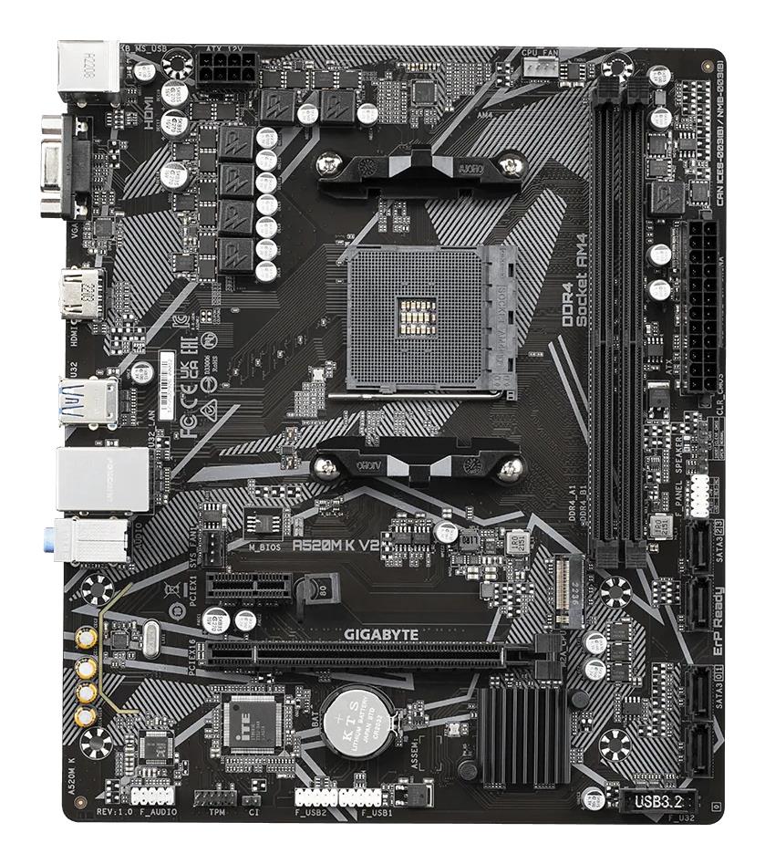 Mainboard GIGABYTE AMD A520 SAM4 Micro-ATX Memory DDR4 Memory slots 2 1xPCI-Express 3.0 1x 1xPCI-Express 3.0 16x 1xM.2 1x15pin D-sub 1xHDMI 2xUSB 2.0 4xUSB 3.2 1xPS/2 1xRJ45 3xAudio port A520MKV21.1
