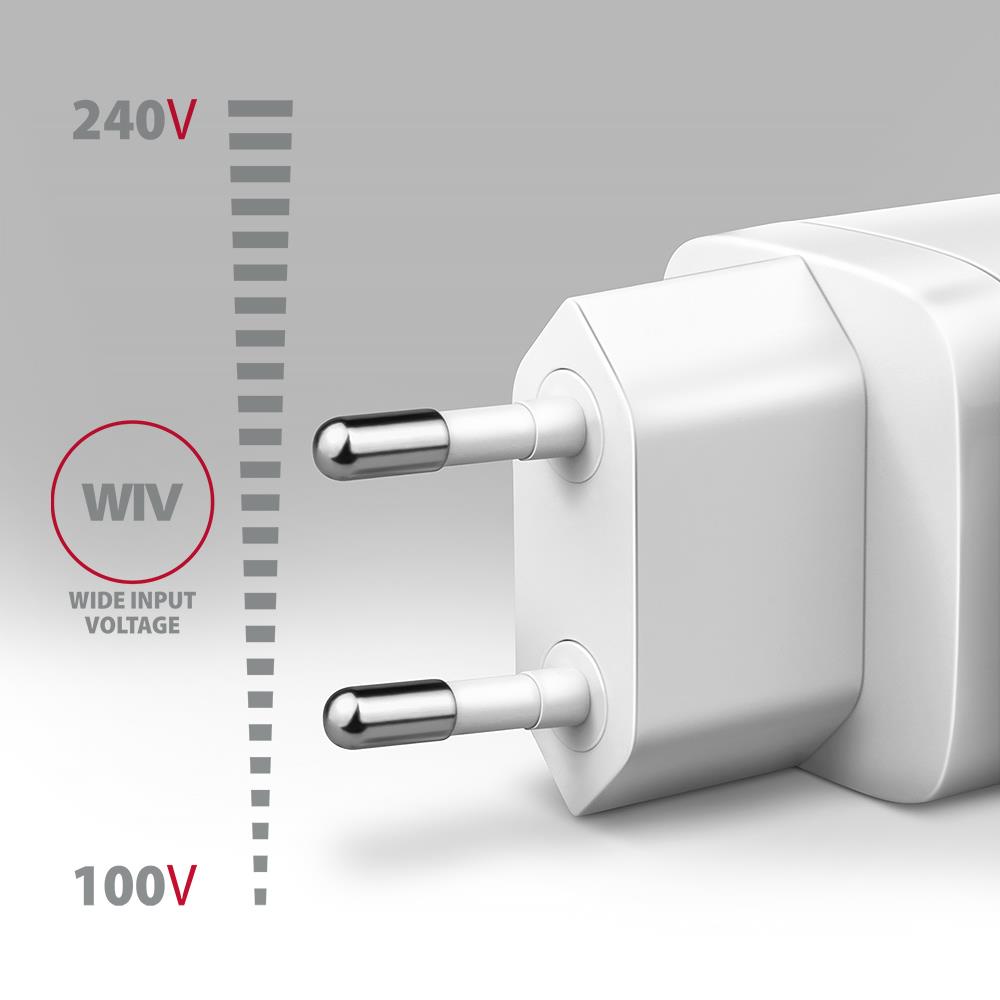 Wallcharger 2x port (USB-A + USB-C), PD3.0 / PPS / QC4+ / SCP / FCP / Apple. 20W total power.