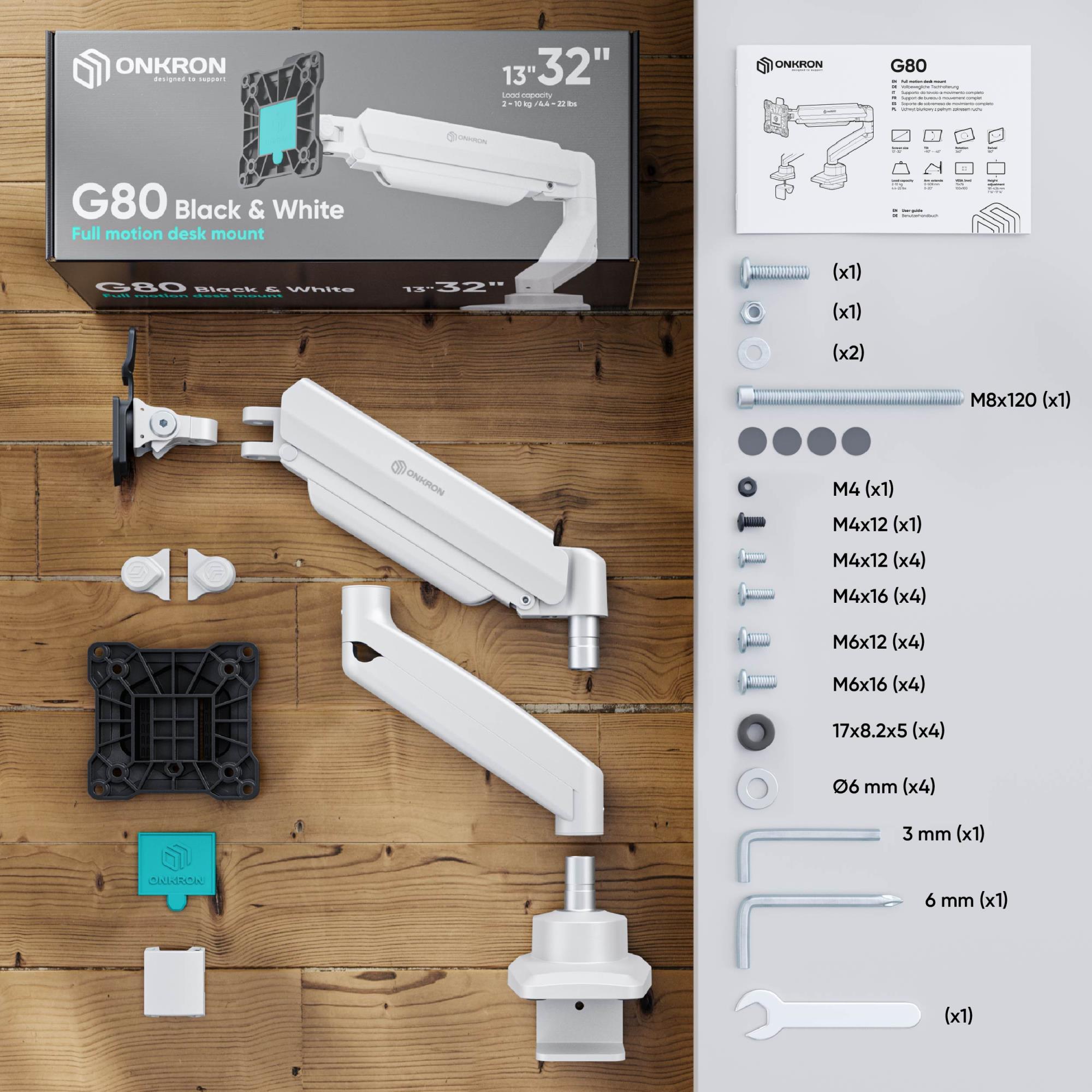 | Vendor Homepage | https://onkron.us/products/monitor-desk-mount-13-32-black-white-g80-bw?srsltid=AfmBOorBY68-m2jRlshMhzF6F1lhJ0_pVVlPSJH5zLDswRvlB3KOqOUw |