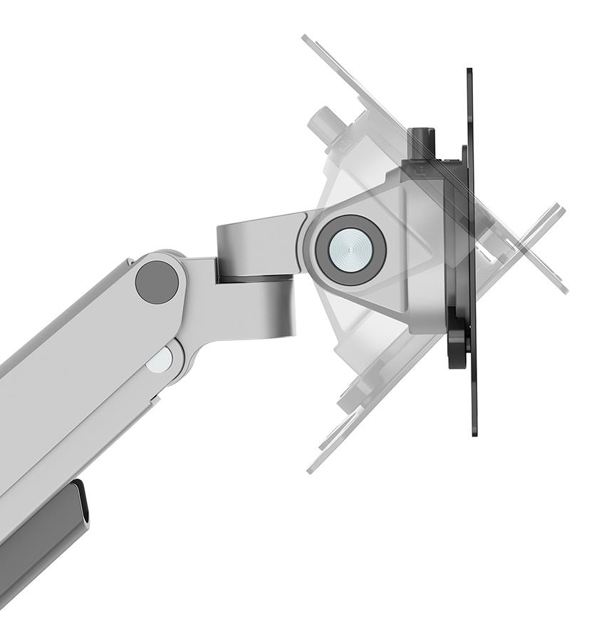 The DS70-250SL1 monitor arm features a nifty 180° stop mechanism, that prevents the mount from making contact with wall or separation panel when installed near it, while the integrated cable management system maintains a clutter-free desk.