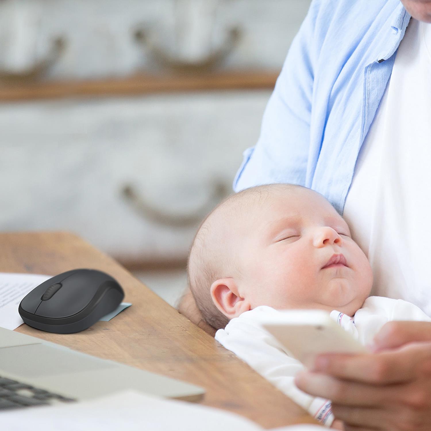 With the same click feel and 90% noise reduction* compared to classic mice, M220 SILENT offers a quiet experience for yourself and those around you. It has a long-lasting 18-month battery life with auto-sleep and a powerful 10-metre wireless range** with 128-bit encryption between the mouse and the receiver. Plus, its small size is perfect to toss in a bag and go. Just plug the tiny USB receiver and it works with Windows®, Mac, ChromeOS™ or Linux®. Finally, the Logitech® Advanced Optical Tracking is designed for smooth and precise moves on almost any surface.