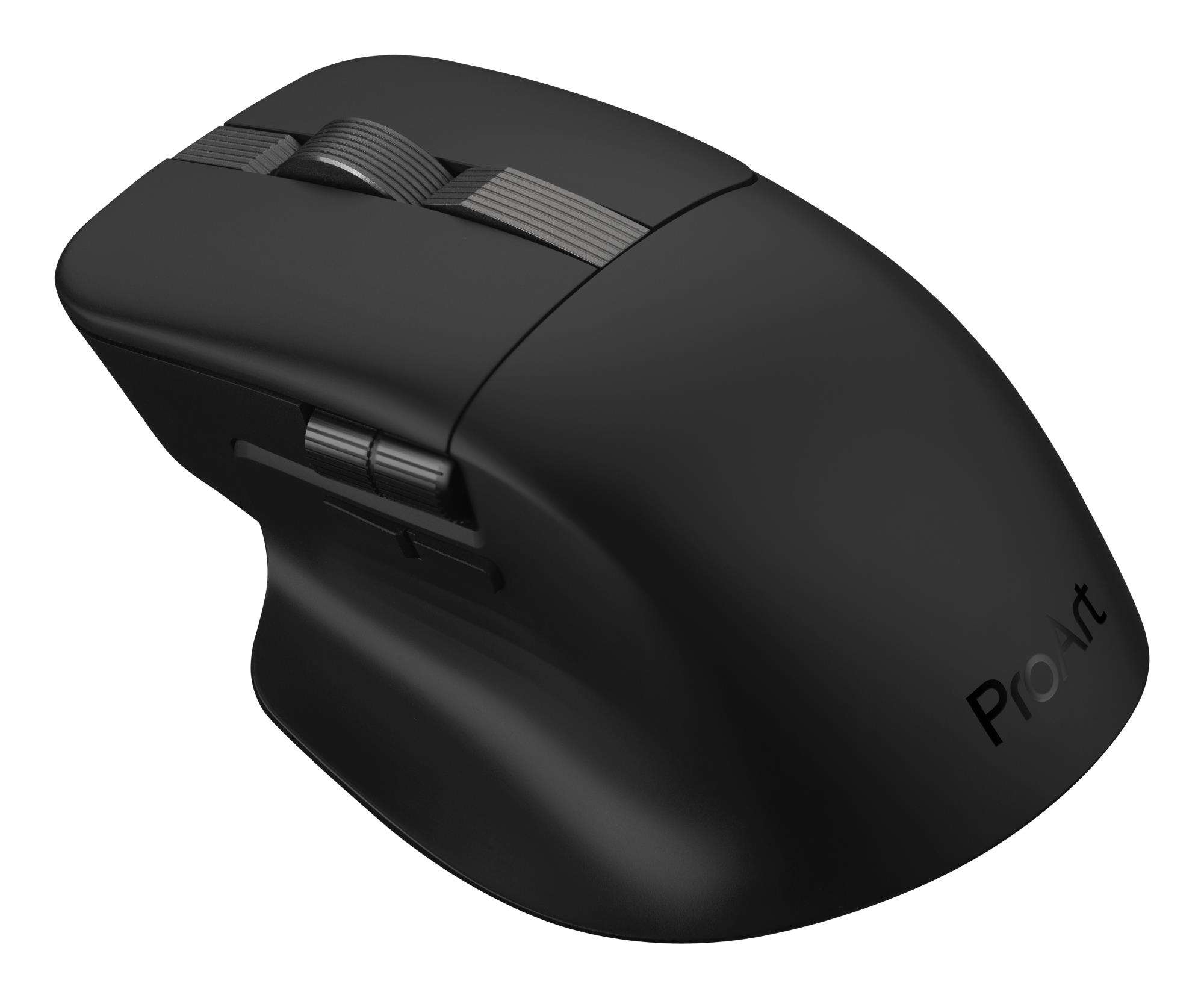 ASUS ProArt Mouse MD301. Form factor: Right-hand. Movement detection technology: Optical, Device interface: RF Wireless + Bluetooth + USB Type-A, Movement resolution: 8000 DPI, Buttons type: Pressed buttons, Buttons quantity: 6, Scroll type: Wheel/Rollerbar. Power source: Batteries. Works on any surface. Product colour: Black