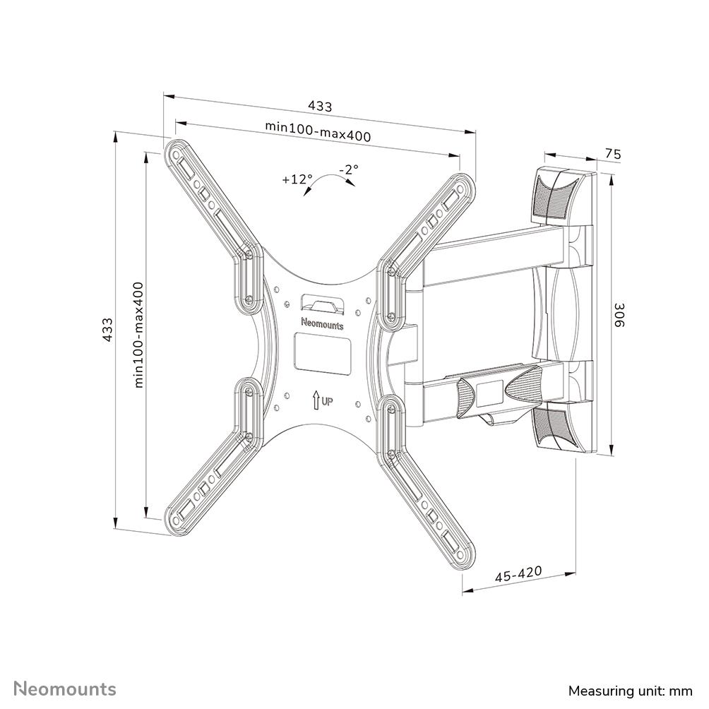 The WL40-550BL14 has a depth of 4,5-42 cm and is suitable for screens that meet VESA hole pattern 100×100 to 400×400 mm.