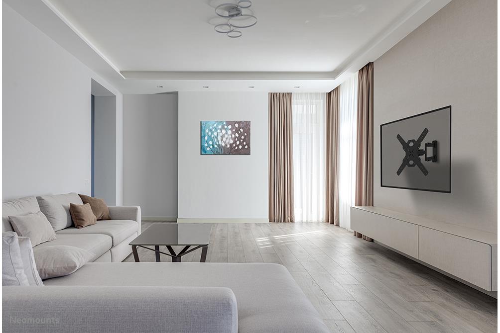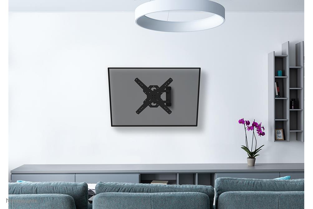 Summary Neomounts WL40S-850BL14 TV mount wall 40-65" – full motion – fast installation. Maximum weight capacity: 40 kg, Minimum screen size: 101.6 cm (40"), Maximum screen size: 165.1 cm (65"), Minimum VESA mount: 100 x 100 mm, Maximum VESA mount: 400 x 400 mm. Tilt angle range: -2 – 12°, Swivel angle range: 0 – 45°, Angle of rotation: 6°, Distance to the wall (min): 4.7 cm, Distance to the wall (max): 55.5 cm. Product colour: Black