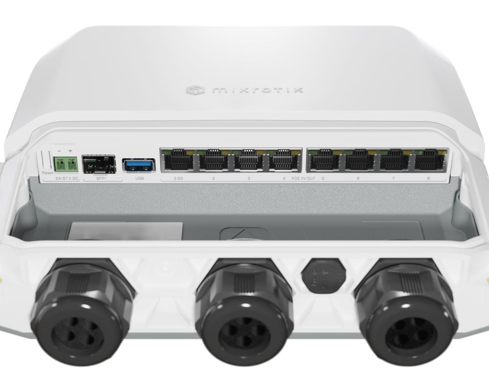 An outdoor version of our best-selling heavy-duty PoE router. Extensive power redundancy for the best price! 7x Gigabit Ethernet ports, 1x 2.5 Gigabit Ethernet, 10G SFP+, 1GB of RAM, 1GB NAND, modern quad-core CPU, 9 (!) powering options, durable IP66 waterproof enclosure.