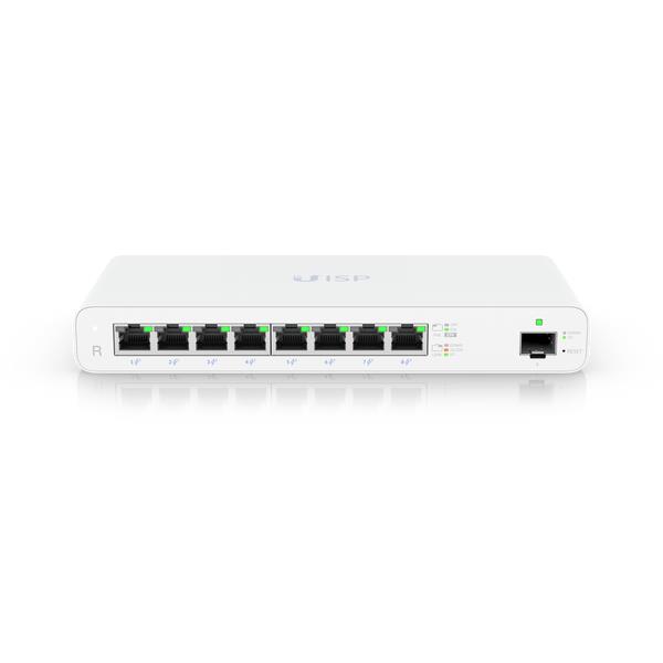 Ideal for wireless ISP (WISP) deployments, the UISP™ Router is a fanless PoE router featuring (8) GbE RJ45 ports and (1) 1G SFP port for an additional fiber uplink option. The UISP Router provides a cost-effective routing solution for WISPs looking to quickly and inexpensively deliver Gigabit wireless speeds to their customers. With its hefty 110W total PoE supply, the UISP Router delivers substantial power to every radio in your service network. The UISP Router is managed with the UISP application, a centralized platform where you can monitor and manage all of your UISP devices.