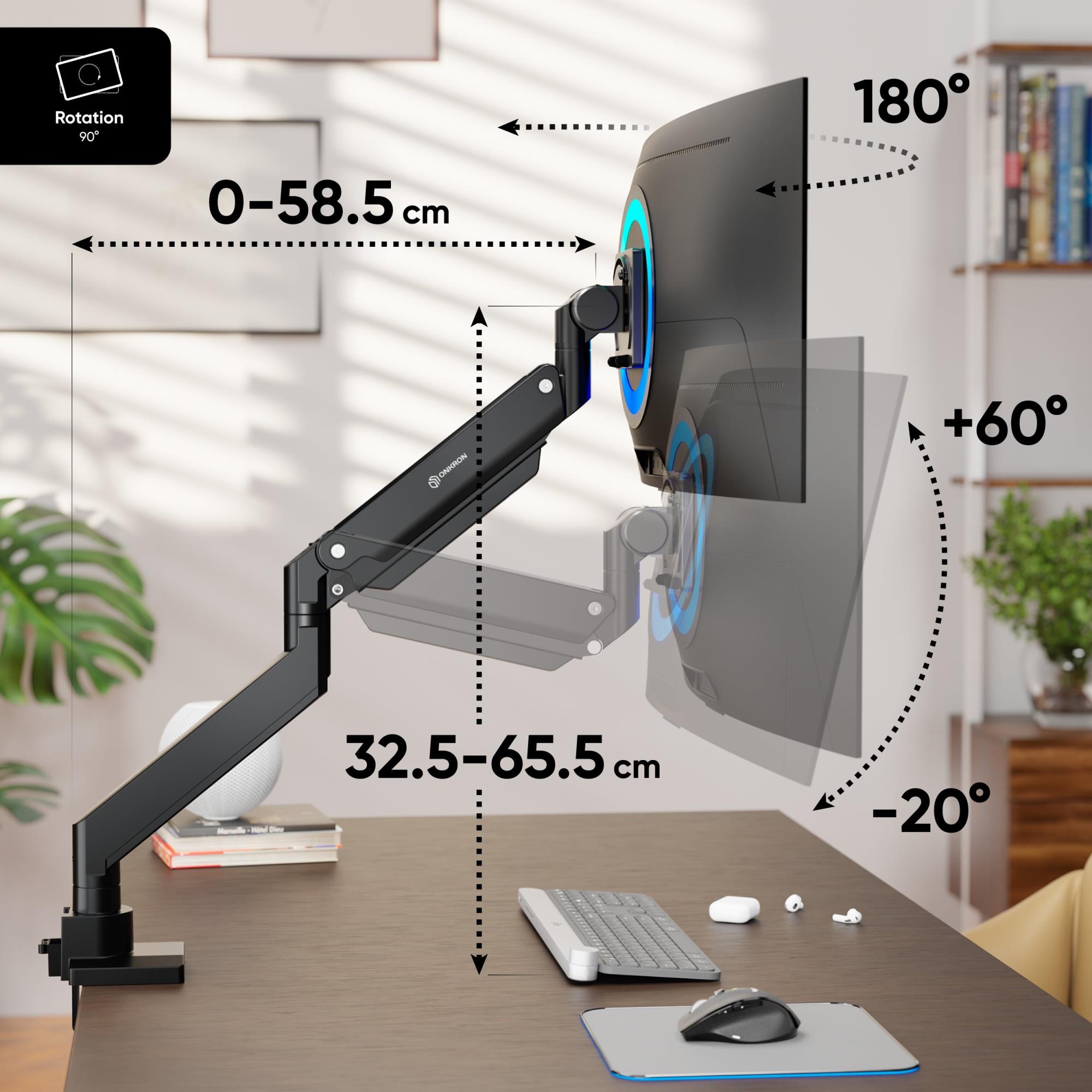 ONKRON G130-B. Mounting: Clamp/Grommet, Maximum weight capacity: 27 kg, Minimum screen size: 43.2 cm (17"), Maximum screen size: 144.8 cm (57"), Minimum VESA mount: 75 x 75 mm, Maximum VESA mount: 200 x 200 mm. Height adjustment, Tilt angle range: -20 – 60°. Product colour: Black