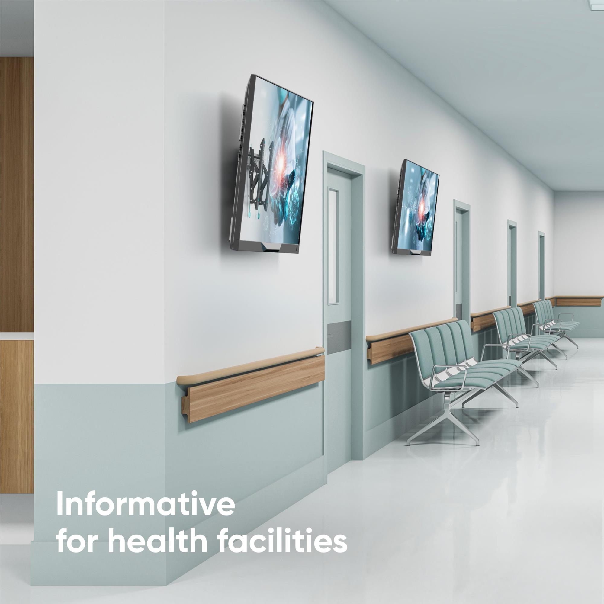 • VESA: 75x75, 100x100, 100x200, 200x100, 200x200, 200x300, 200x400, 300x100, 300x200, 300x300, 300x400, 400x200, 400x300, 400x400 mm