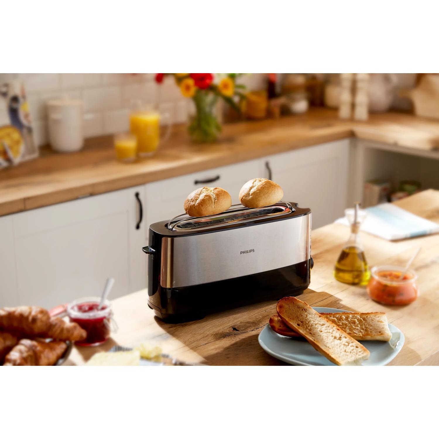 Philips Viva Collection HD2692/90 Toaster. Number of slices: 1 slice(s), Product colour: Black, Metallic, Housing material: Plastic. Power: 950 W, AC input voltage: 220-240 V, AC input frequency: 50-60 Hz. Cord length: 0.85 m, Width: 402 mm, Depth: 120 mm. Country of origin: China, Doesn't contain: Bisphenol A (BPA), Warranty period: 2 year(s). Quantity per pack: 1 pc(s)