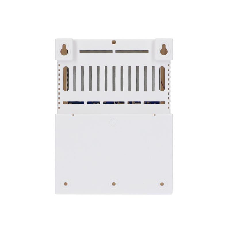 VIDI-ZBF-100PB 10A buffer power supply. The device is characterized by very compact dimensions, but despite this we can fit a 17Ah or 18Ah battery inside. Smooth voltage regulation in the range of 12…14V. The power supply has lights informing about its operating status. The housing is made of plastic and equipped with ventilation holes and brackets for wall mounting. Input voltage: 190-240V AC 50/60Hz; Output voltage 12…14V DC; Total power: 142W; Output current: 10A; Battery charging current 1.8A; Indicator lights AC input, DC output, Charging, Low battery; Overcurrent protection; Short circuit protection, Battery overcharge protection; Battery overdischarge protection; battery – not included
