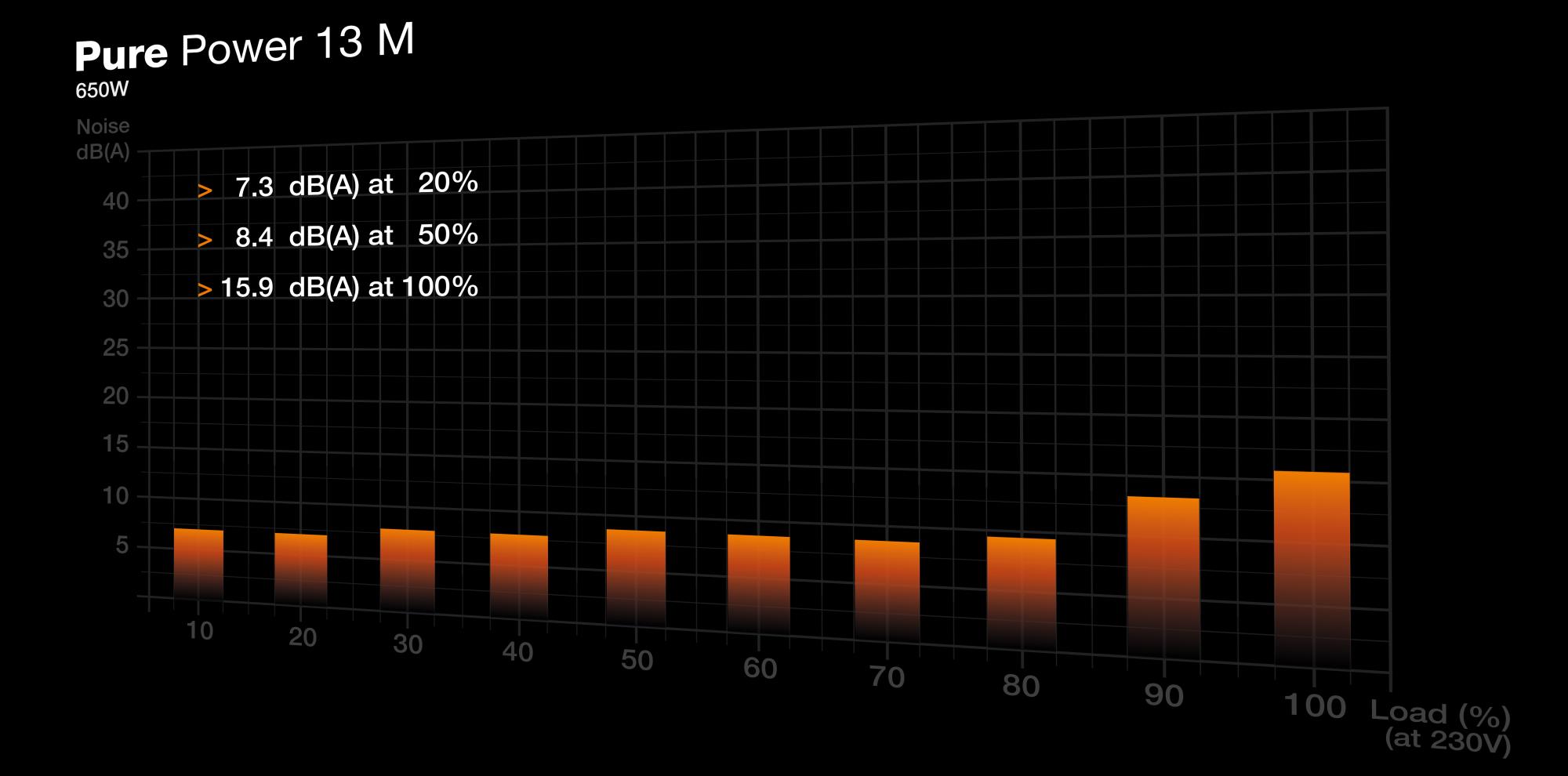 Pure Power 13 M 650W is an ATX 3.1 compliant and PCIe 5.1 compatible power supply with semi-passive cooling. It offers peerless dependability with best-in-class features. Having both a PCIe 5.1 cable and PCIe 6+2 cables in the scope of delivery, this PSU offers outstanding compatibility with current-gen and next-gen graphics cards. Pure Power 13 M 650W offers the best combination of features with outstanding compatibility.