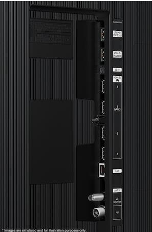 | Samsung technologies (AV/TV) | 4K AI Upscaling/AirSlim/Art Store/Auto HDR Remastering/Built-in SmartThings Hub/EyeComfort Mode/Generative Wallpaper/Karaoke Mode/Multiple Voice Assistants/Object Tracking Sound Lite/Q-Symphony/Quantum Matrix Technology Plus/Samsung Health/Samsung Q-Symph |