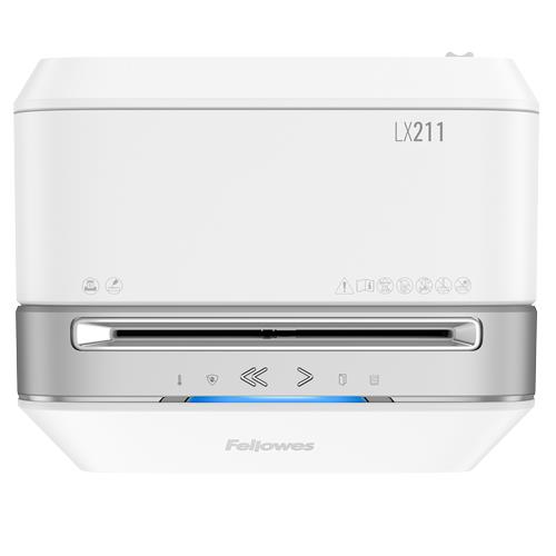 Full Description Line: Model name Powershred LX211|Entry width 230 mm|Speed 2 mpm|Shred width 2 x 12mm|Can shred Staples/Credit cards/Paper clips|Paper clips|Waste collection capacity 23 l|Colour White
